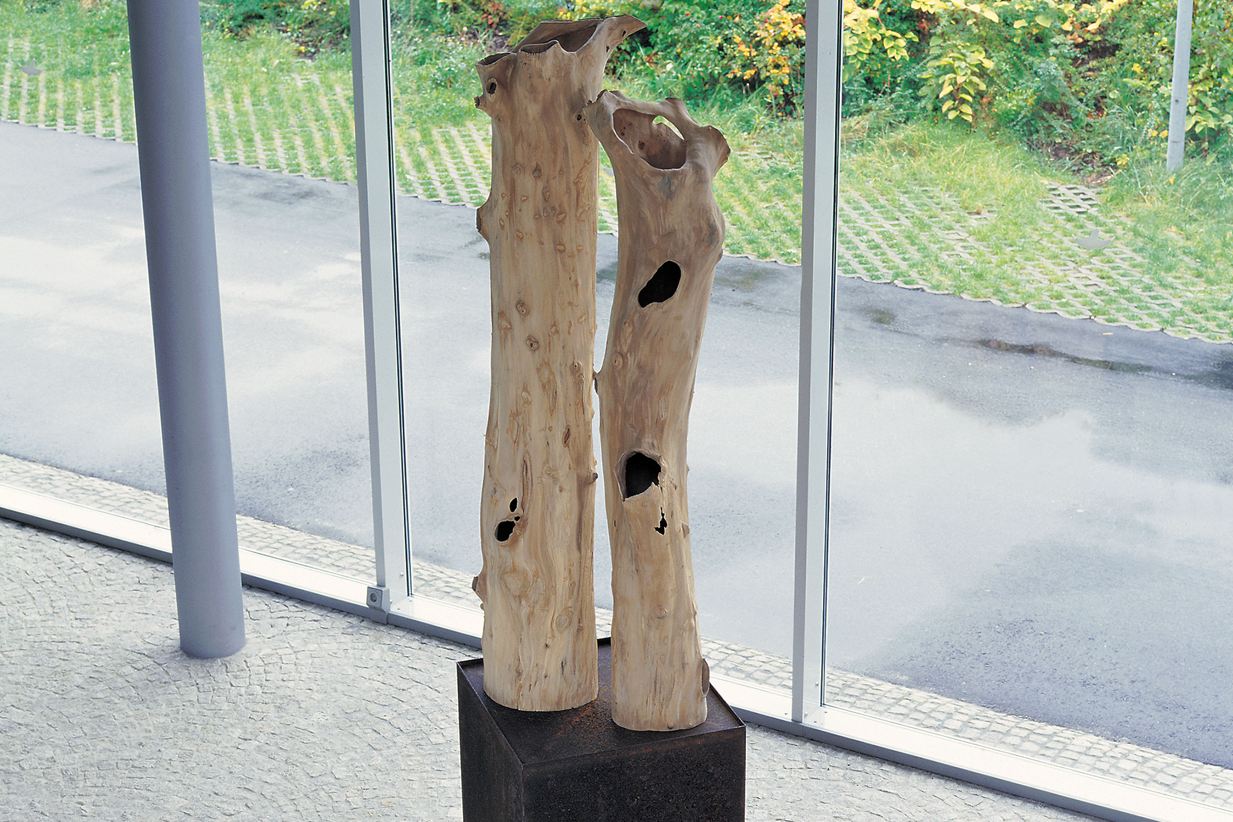 Zwei Stämme auf rostigem Sockel